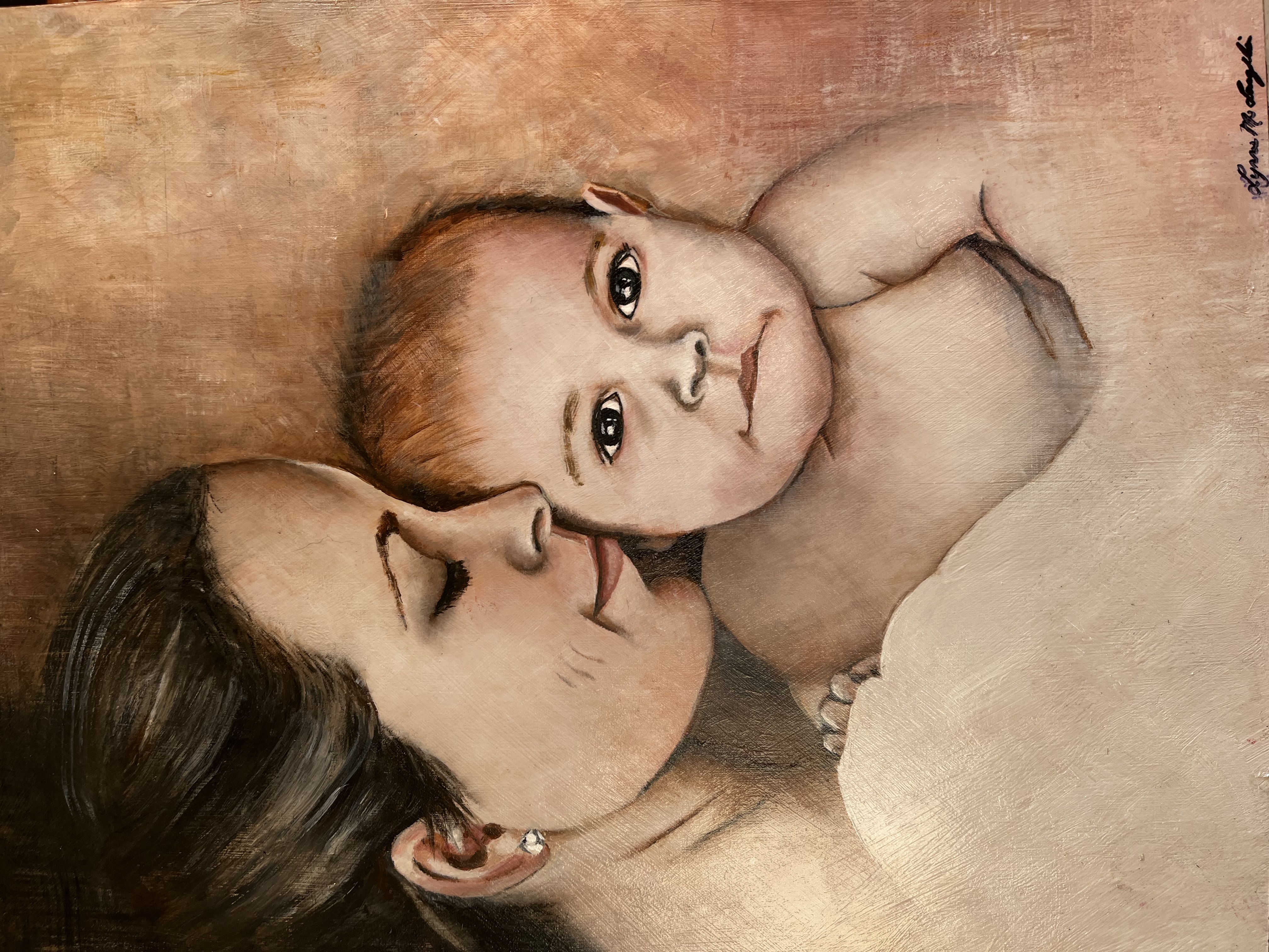 "I am gobsmacked by how much I adore this painting - I keep staring at it. Now that I'm settling into motherhood, and loving my beautiful little boy, it will be a permanent reminder of special times. I will cherish it forever". - Sarah.