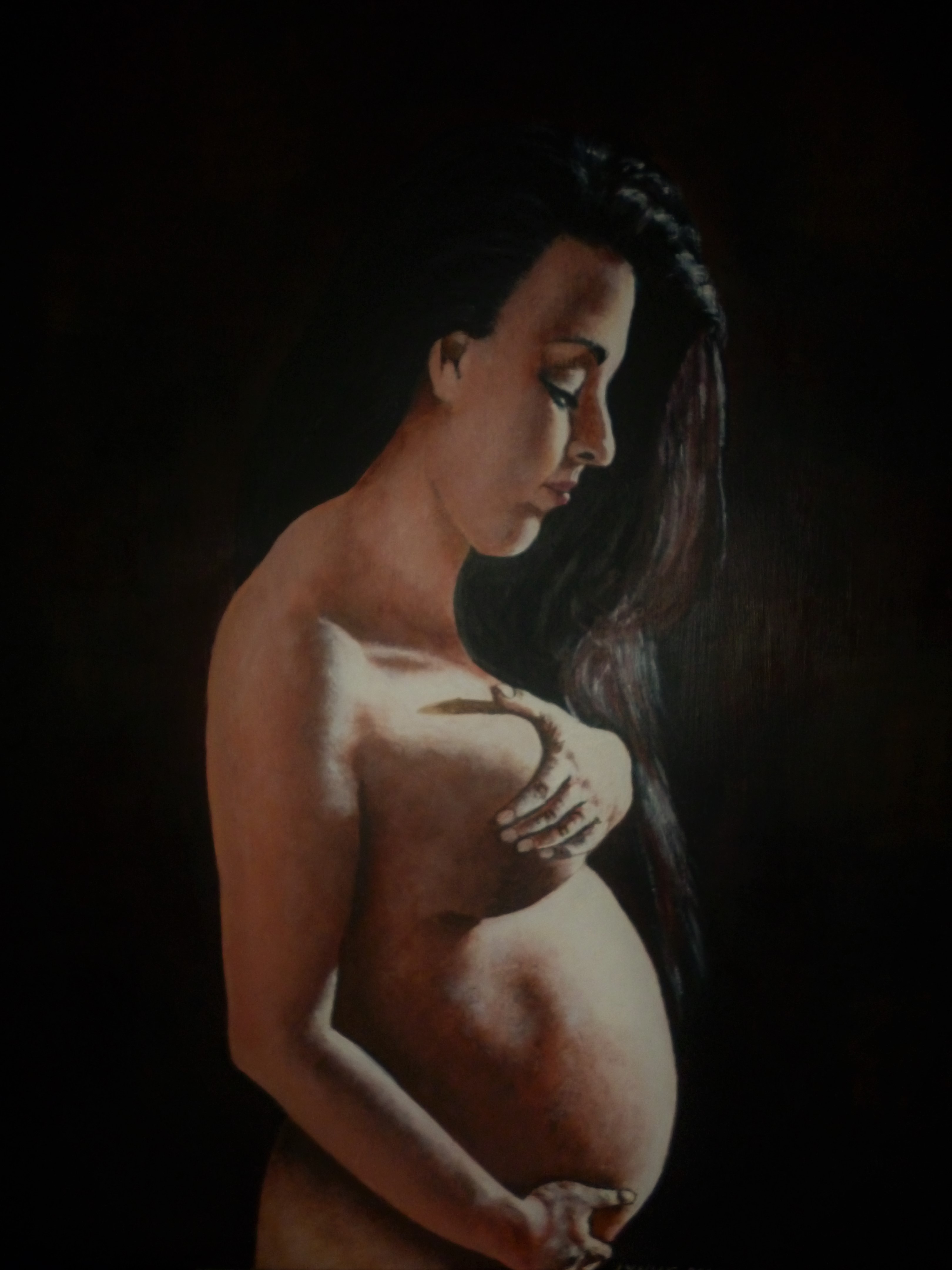 For me, there is nothing more beautiful than a body in pregnancy. Could this be you, or your partner? Acrylic on board. 16"x 24"